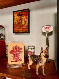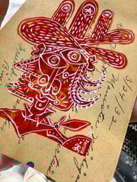 "3/24/32" - red and white India ink on page from a High school autograph book from Michigan 1932. Will come in clear acrylic frame with stand. If you prefer unframed, I will ship it to you and refund $15. 4.5"w x 6"t (unframed) 5"w x 7.25"t in frame/holder.