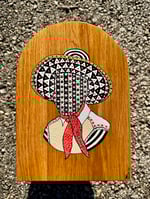 “King of the Road” - acrylic and collaged antique gold embossed 100 year old cigar bands on white oak. Ready to hang and stare at while you smoke your stogies. 7”w x 10”t. Gloss finish for easy maintenance.