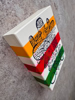 “Warmth on a Cold Night” - acrylic and spray paint on masonite panel. 5”w x 7”t.